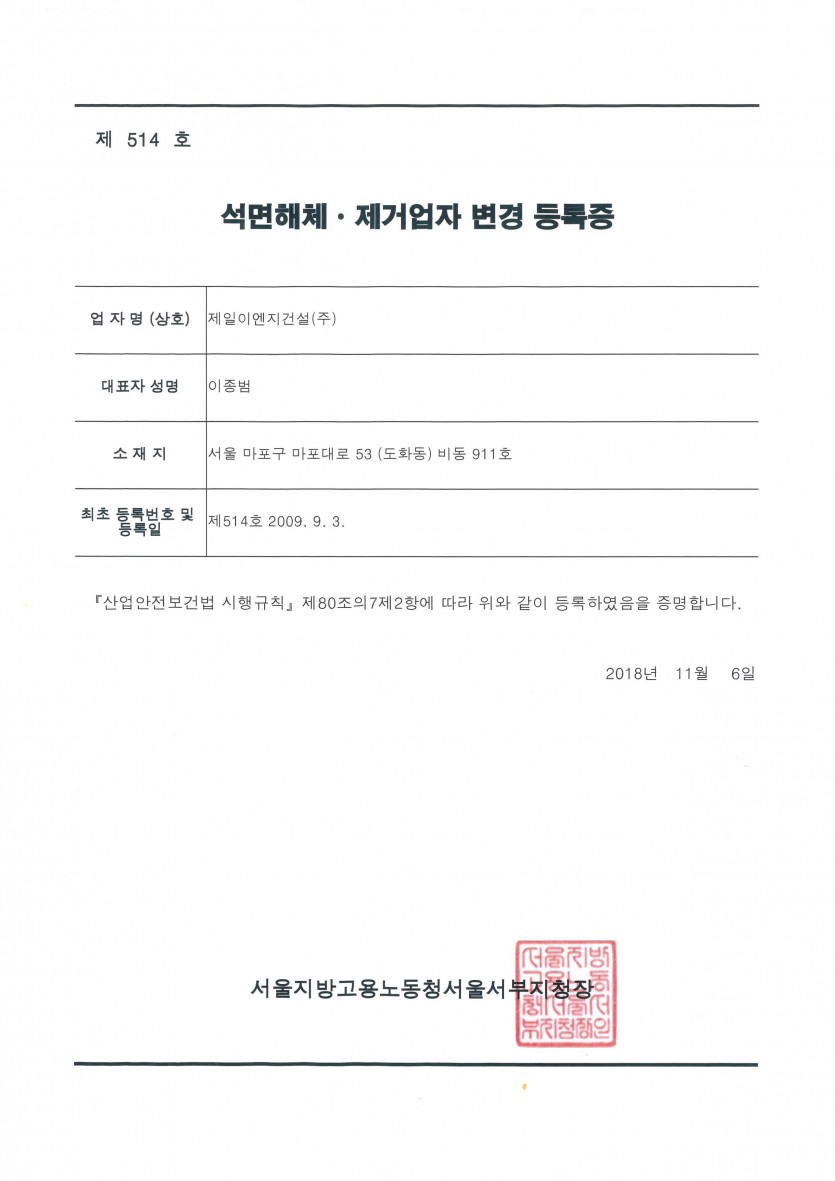 석면해체, 제거업자등록증 페이지 정보 작성자 최고관리자 댓글 0건 조회 454회 작성일 19-12-02 15:54 본문 . 목록 이전글비계구조물해체공사업등록증 19.12.02 다음글표창장 19.12.02 댓글목록 댓글목록 등록된 댓글이 없습니다.