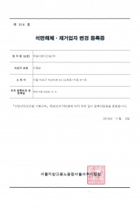 석면해체, 제거업자등록증